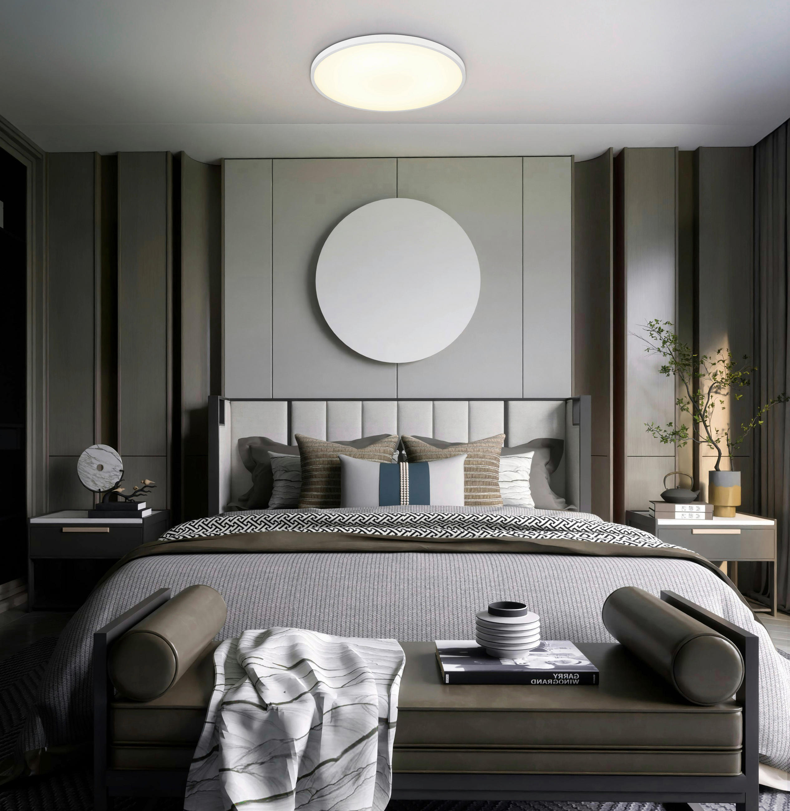 Še eden od pomembnih vidikov dobrega spanca je, da glavna osvetlitev za spalnico ni slepeča, ampak je neposredna ali difuzna, torej ne sveti direktno v oči in ne dela prevelikih senc. Najboljša izbira so torej stropna svetila z mlečnim pokrovom, viseča svetila za spalnico s senčili, ki razpršijo svetlobo, panelne LED luči z difuzorjem, stenske luči, ki svetijo v strop ali steno in od tam razpršujejo svetlobo po prostoru, in LED trakovi skriti za letvami ali ob stropu.