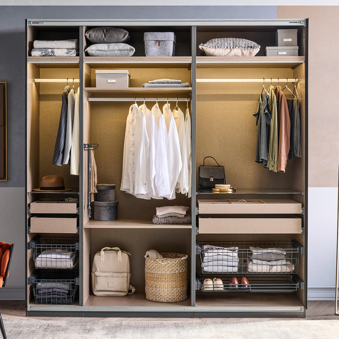 V nasprotju z glavno osvetlitvijo spalnice, mora biti osvetlitev garderobe ali garderobne omare močnejša. Pri tem je zelo pomembno, kakšen je CRI – indeks barvnega videza luči.
