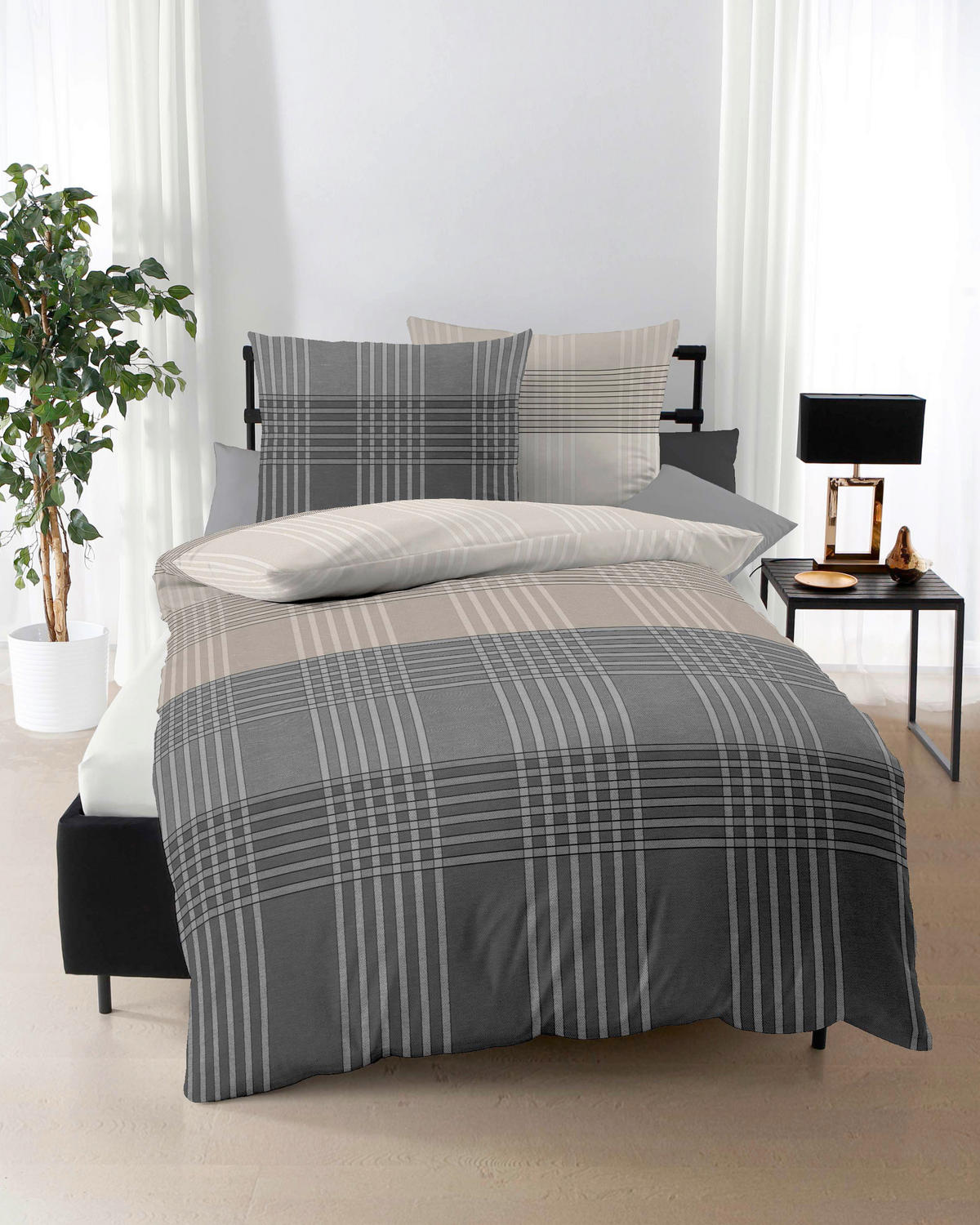Kaeppel POSTELJNINA Zones 140/200 cm bombažni flanel siva
