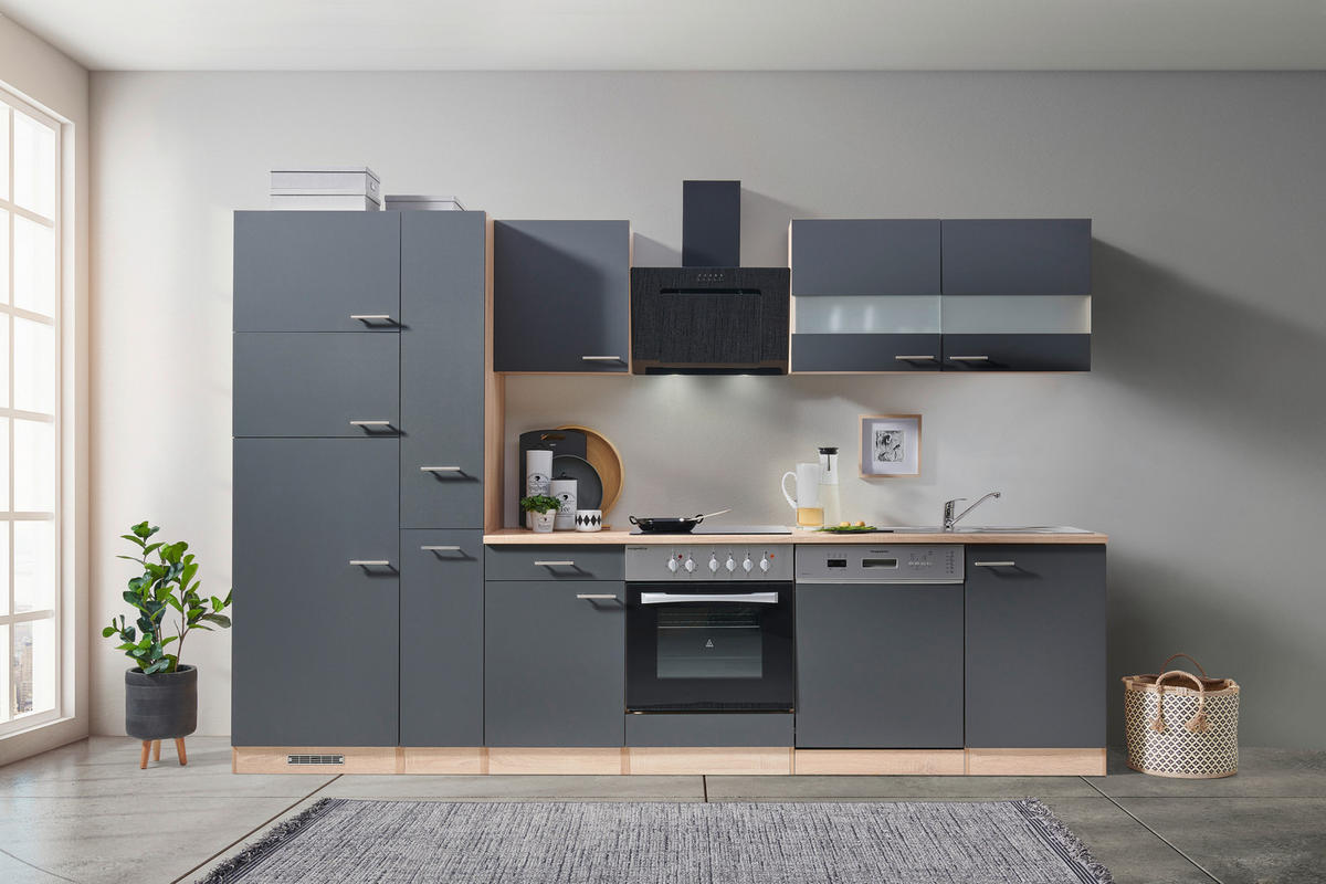 - vključeni električni aparati: kuhinjska napa, vgradni štedilnik, pomivalni stroj, hladilnik z zamrzovalnikom, steklokeramična kuhalna plošča