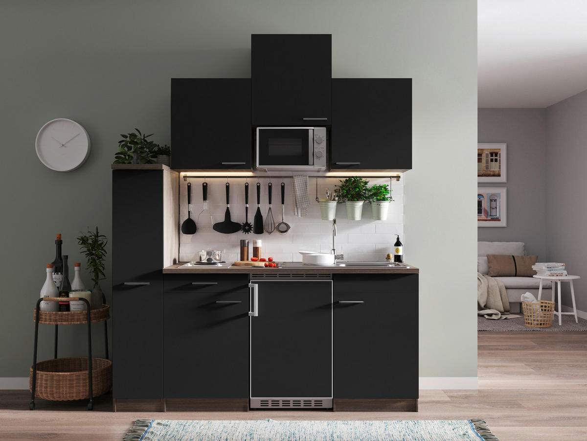 - vključeni električni aparati: hladilnik z zamrzovalnim predalom, mikrovalovna pečica, kuhalna plošča
