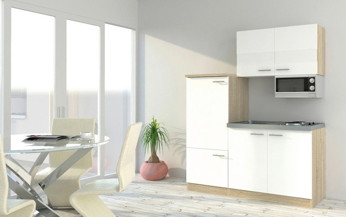 - vključeni električni aparati: hladilnik z zamrzovalnim predalom, mikrovalovna pečica, kuhalna plošča