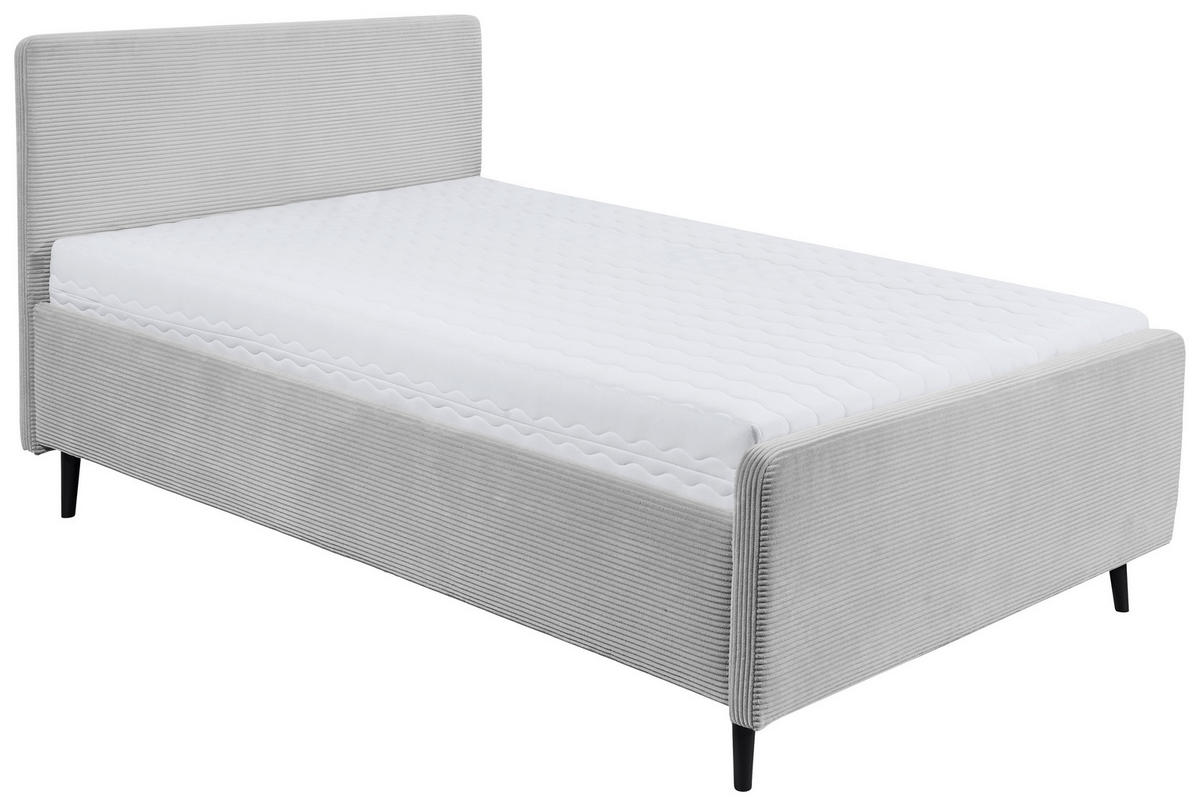 MID.YOU OBLAZINJENA POSTELJA 140 cm x 200 cm , tekstil, leseni material svetlo siva