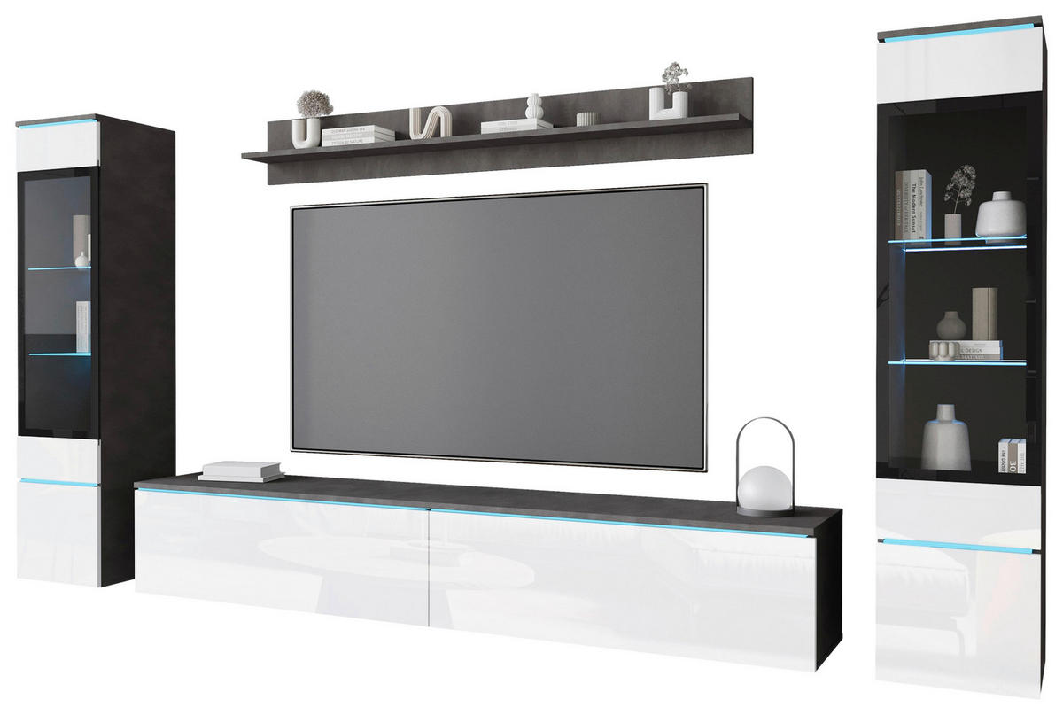 P & B DNEVNI REGAL, antracit, bela, visoki sijaj