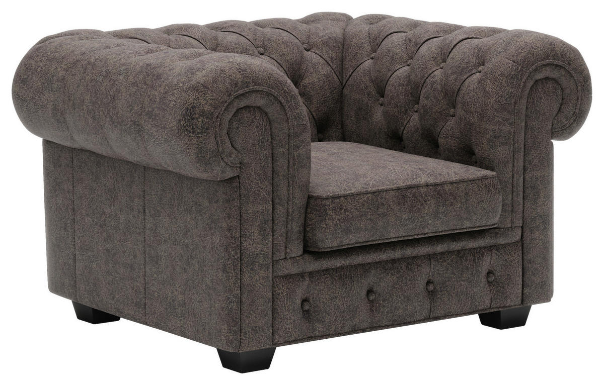 CHESTERFIELD FOTELJ,  temno rjava usnje - barve wenge/temno rjava, Trendi, les/usnje (115/76,5/96cm) - Welnova